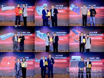 同时,为加速商用车行业绿色化、高效化与低碳化转型进程,零部件组评选紧扣行业发展趋势及核心需求,聚焦动力系统、核心总成等关键领域,针对性地设立了“2025年度新能源重卡动力总成创新引领奖”、“2025年度重卡电机质量引领奖”、“2025年度新能源重卡电驱动卓越引领奖”等年度奖项,全方位覆盖产业链关键环节。
