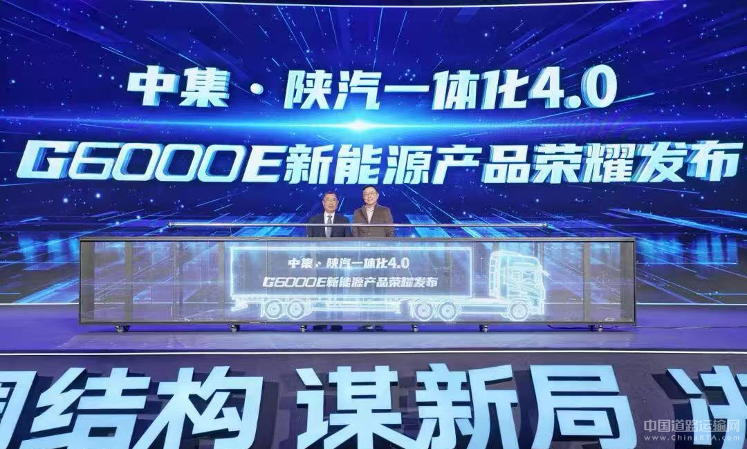 陕汽控股党委书记、董事长袁宏明,中集车辆董事长兼CEO李贵平共同发布中集陕汽一体化4.0 G6000E新能源产品