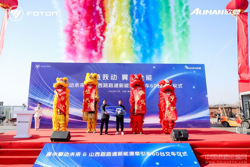 2025年12月15日,以“星随我动 翼启全能”为主题的晋中擎动未来&山西路路通新能源牵引车60台交车仪式在山西晋中市隆重举行。现场,搭载自主电池的60台欧曼星翼400kWh新能源牵引车正式交付山西经销商及物流运输企业,以超值高效、全能场景的产品力为三晋大地的物流产业提供绿色动能。本次交付,充分展现出欧曼在新能源技术领域的领先实力,以全场景解决方案带动物流产业升级,有力促进山西区域经济的高质量发展。