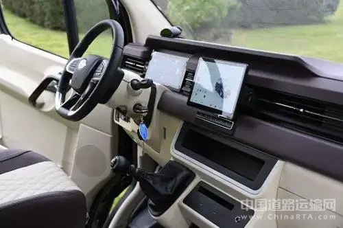 米色与酒红色相间的仪表台将现代质感与复古韵味完美融合。标配的10.1英寸全液晶显示屏支持多模态人机交互,语音控制、远程诊断等功能的加入,让车辆管理变得简单高效。