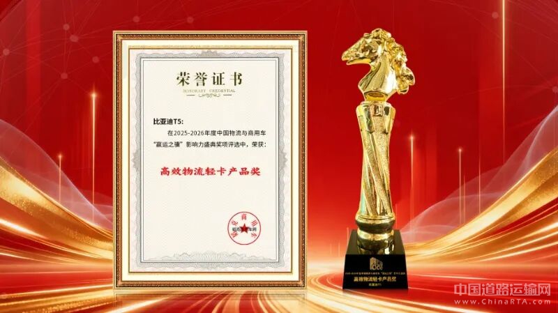 比亚迪T5的市场认可度不仅体现在销量数据上,更获得行业认可。近日,在2025第七届赢运之骥影响力盛典上,T5凭借高效运营表现,荣膺“高效物流轻卡产品奖”。