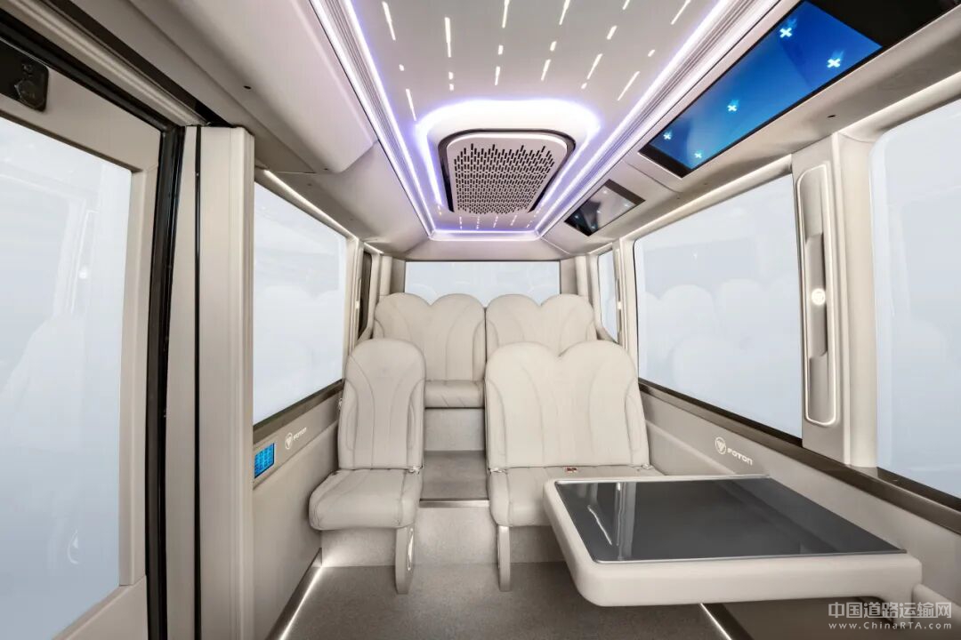 内饰方面,欧辉智能巴士创新采用环抱式座舱、一体化侧围、隐藏式空调出风口等乘用车化设计,融入悬浮式功能桌、车载冰箱、定制咖啡机等高端配置。加宽沙发式座椅,甄选纳帕超纤皮,贴合人体工学;顶部悬吊顶内饰,搭配透光流水氛围灯,营造出开阔明亮的乘坐环境,完美适配商务会晤等多元场景。