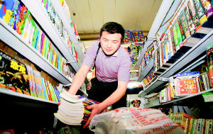 在南郊客运站候车大厅,一楼候车区正前方连排摆放了几张桌子,兜售时下最热门的畅销图书,一般按半折的价格出售,销售情况比正版还好。“流动书摊”的雇员告诉记者,一天营业额在200元左右。