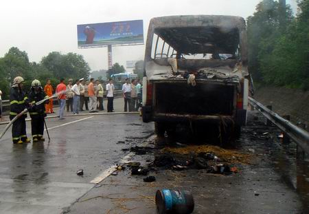 “有人哭,有人闹,真的是像电影中一样!”回忆起当时逃离客车的情况,王先生还心有余悸。他介绍,车上当时坐满了乘客,车头先燃了起来,灭火器根本起不到多少作用,后来在赶来的消防官兵的协助下,火才被熄灭,乘客们有的掉了这样东西,有的掉了那样东西,乱成一团。