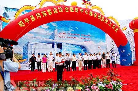 8月13日,位于广西昭平县城河东的上岸村彩旗飘扬,锣鼓喧天,喜炮齐鸣。总投资3710万元的该县河东客运综合服务中心在这里正式开工建设。