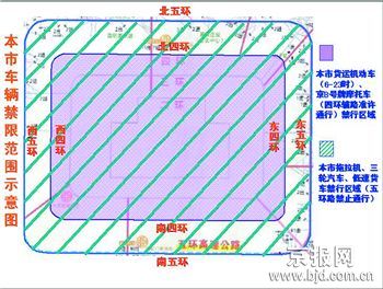 图说:本市拖拉机、三轮汽车、低速货车禁行区域(五环路禁止通行)