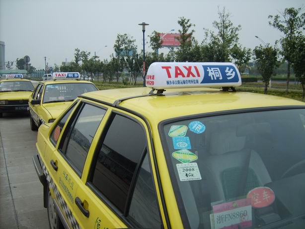桐乡市出租车自2000年3月实行“五统一”规范化管理以来,车辆顶灯经过长时间风吹日晒雨淋以及行车的颠簸,面壳泛黄老化,标识模糊,有的甚至已损坏,不能适应桐乡市创建生态城市的要求。这次更换的顶灯采用新型材料制作,支架也由单臂改成双臂,牢固性更强,亮度更亮,更加美观大方。为减轻企业和驾驶员的经济负担,桐乡运管所采取市场化运作的方式,免费为出租车驾驶员更换出租车顶灯,受到出租车企业及广大驾驶员的欢迎,也为桐乡增添了亮色。