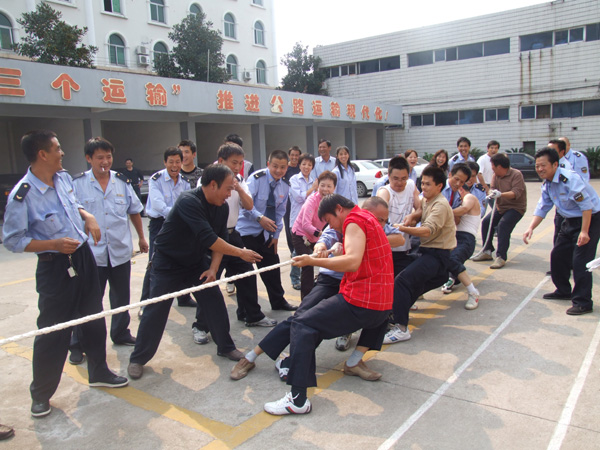 10月25日,浙江省兰溪市运管稽征所大院内热闹非凡。中午12时,拔河比赛正式开始。顿时,哨声、呐喊声、口令声、喝彩欢呼声响彻云霄。场上选手个个生龙活虎,奋力拼搏,场边助威的啦啦队更是不遗余力,为场上队员呐喊助威,整个比赛现场气氛热烈。