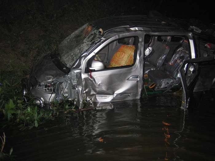 11月18日下午,刚取得驾驶执照才一个多月的岑溪市大隆镇青年卢某,驾驶着崭新的牌号为桂D2721X的五菱鸿途7座面包车,在未取得合法营运手续的情况下,搭载着10名初中学生(7男3女,分别在黎木二中和黎木中学就读)从大隆镇某村出发前往毗邻的黎木镇,16时许,该车途经黎木镇三益村“走鸡冲”的一处狭窄转弯上坡路段时,与一辆牌号为湖南MAG51X的农用运输车会车,由于卢某经验不足操作失误,导致面包车冲出路边,顺着杂草丛生的陡峭坡面飞驰而下近30米,被一棵约20厘米粗的树木阻挡了一下后,坠入下面水深不足半米的小河中,车辆严重损坏,车上11人全部受伤。经有关方面全力抢救,车上人员被紧急送往黎木卫生院救治,经初步检查,所幸均无生命危险,只有两名分别腰部和头部受伤的学生伤势稍重,司机卢某手部也受轻伤。