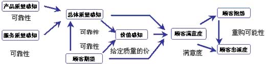 Fornell等(1996)认为,将质量感知也包括在模型中,可以进行质量因素和价值因素对满意度的作用大小的比较。同时,也可以考察它们两者之间的联系。根据Deming(1981)和Juran & Gryna(1988)的发现,质量感知主要包括两个部分——产品/服务满足顾客需求的程度(customization),以及这些需求满足的可靠程度(reliability),因此可以从这两个方面来分别衡量质量感知。