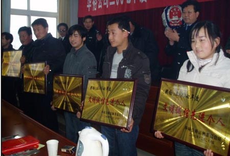 图为领导为荣获殊荣的客车司乘人员颁奖