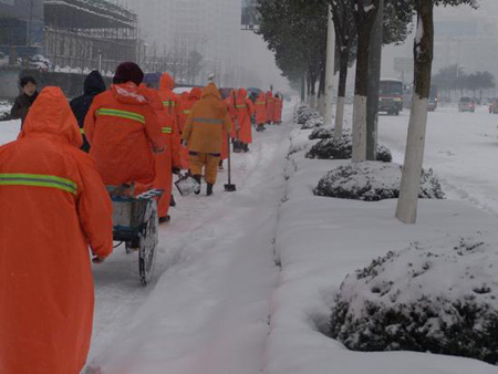 2008年1月27日,合肥雪景。安徽省气象台26日上午再次发布暴雪橙色预警,全省大范围内将迅速覆盖在雨雪天气之中,部分地区已降下暴雪。从26日清晨开始至上下午2点,合肥地区连续大雪和暴雪,积雪深达到达32厘米,道路结冰,给春运交通带来严重影响。合肥客运全面停运,安徽省内交通基本停顿。未来几天,合肥地区仍将是大到暴雪天气。