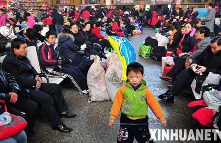2月12日,旅客在银川市南门长途汽车站候车室候车。当日是春节长假最后一天,银川公路春运迎来旅客返程高峰。