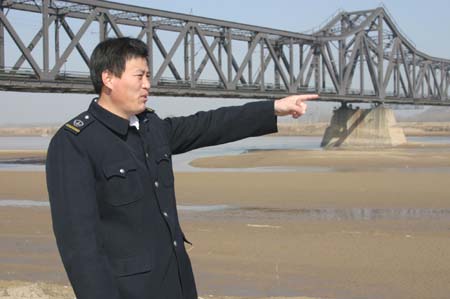 光如友站在岸边告诉大家那个落水女被打捞上来的地方
