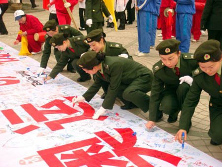 当日上午,在夷陵区举办的“迎奥运,千名巾帼健步走”活动中,寻着嘹亮的口号声望去,头戴贝蕾帽,身着橄榄绿,手戴白手套,队列整齐,英姿飒爽的交通女职工方阵格外引人注目。一路上交通女“兵”们迈着矫健的步伐,高喊“发展交通,服务社会”的口号,用健康和美丽向人们展示着交通女性的自信和骄傲,赢得了沿途群众的声声赞许。经过一个半小时的行程后,她们不顾身体疲劳,兴致勃勃的在“万人签名迎奥运”的横幅上签上了自己的大名,表达了新时期交通女性对奥运的期盼。