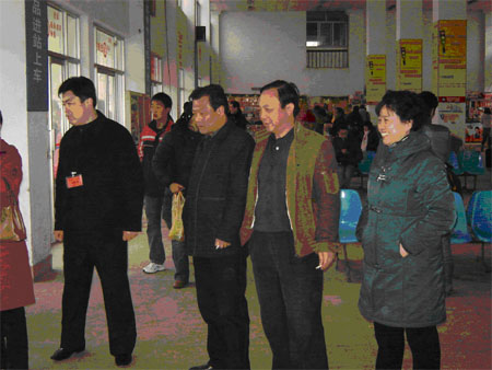 市局检查组一行深入东海县客运北站长途售票厅、候车室和发车场地通过看现场对东海县客运部门落实各项措施情况进行细致检查,并听取了东海县交通局领导的情况介绍和县交通客运公司经理李智的情况汇报,对东海县交通局开展“农民工平安返乡(岗)”安全优质服务竞赛活动营造的氛围及落实各项措施的做法给予了充分肯定。市交通局领导希望东海县交通局客运部门保持省市“农民工平安返乡”安全优质服务竞赛活动先进单位(集体)的荣誉,进一步做好农民工运输安全管理和优质服务竞赛组织工作,在连续雨雪雾冰冻等恶劣气候条件下落实各项安全措施,确保农民工春运期间平安返乡过节、顺利返岗务工。