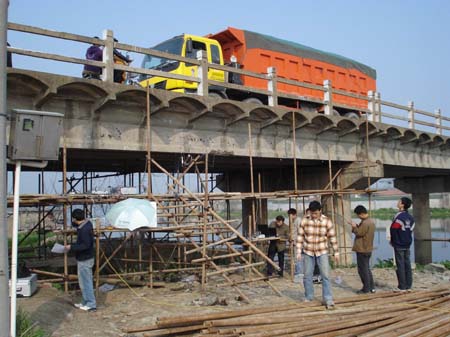 4月13日,江苏省连云港市公路处邀请了江苏省南京航空航天大学教授、学生一行11人对灌云杨集镇境内的杨集大桥进行了一次全面的检查。此次检查中应用先进的静动态检测设备,运用科技手段为桥梁进行“听诊号脉”,通过半天时间的紧张忙碌,圆满完成了各项预定的目标。