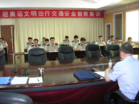 为配合部队车辆队伍教育整顿活动,4月16日,玉林交警应邀在玉林军分区举行了“迎奥运文明出行交通安全教育”专题讲座。