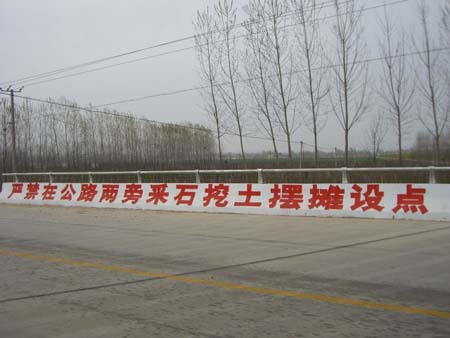 近日,赣榆县公路站组织人员在境内干线公路桥梁防撞墙上书写固定式宣传标语,以“农村公路管理养护”为主题,采取多种形式,广泛进行公路法规宣传。