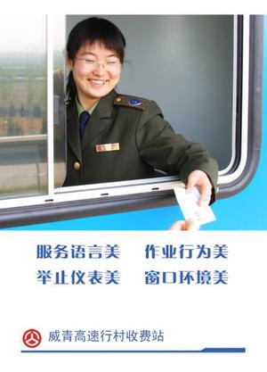 随着北京2008奥运会开幕式一天天临近,作为圣火传递路线上必经的威青高速公路上的一线收费员们始终坚持微笑服务,礼貌待人,以真诚自然的微笑,饱满的热情对待每一位过往的司乘人员,努力做到在岗一分钟,微笑60秒,在自己的本职岗位上为2008北京奥运会增光添彩。