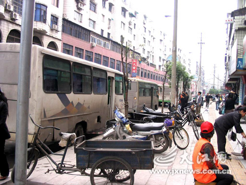 萍乡市西环路八一街繁华路段是当地一条交通要道,据该市交通局有关人士介绍,湘东片区共有500余辆客运车,都得从这里通过。然而,通往该市湘东方向的不少客运车辆都把这里当成临时“客运站”,造成这条路时常堵车。