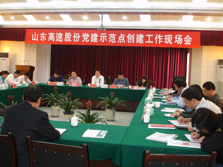 为深入贯彻党的十七大精神,巩固和发展保持共产党员先进性教育成果,进一步加强和改进公司党建工作,加快推进公司党建示范点创建工作,按照山东高速股份有限公司党委的安排部署,2008年5月15日,山东高速股份党建示范点创建工作现场会在滨州黄河大桥管理处召开。会议由公司政治部主任郭玉波同志主持,会上滨州桥管理处党总支副书记王伟同志代表处党总支作党建工作汇报,公司党委副书记、纪委书记崔志民同志出席会议并作了重要讲话。