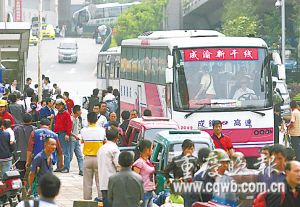 昨下午,菜园坝汽车站候车厅。“成渝新干线”调度中心主任陈孝渝手中电话不断。他说,成都汽车站往重庆方向有数千人等着乘车,要求加快车辆周转。“我也实在没办法。”陈孝渝说,重庆至成都车辆总计93辆,其中10辆被四川省政府征用,余下83辆车,除10辆双层大客和极少部分普车在维持滚动发班外,其余车辆全都是到达重庆后,立即放空回成都装客。