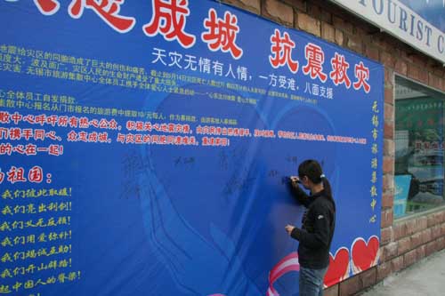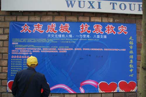 无锡市旅游集散中心呼吁游客向灾区捐款