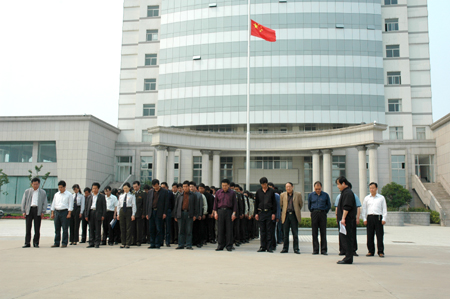 5月19日下午2时28分,赣榆县交通局机关全体干部职工在办公大楼前举行默哀仪式,深切哀悼四川汶川大地震的遇难同胞。