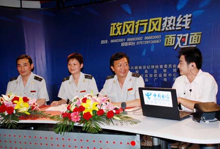 “政风行风热线”栏目是由赣榆县纪委、监察局主办,县行政效能监察中心、广电局承办,以“打造作风更正、服务更优、效能更高的经济发展软环境”为宗旨,县直机关部门和窗口单位负责人轮流走进行风热线现场直播室,通过直播平台与现场群众面对面交流。节目播出期间,该站领导就加强窗口单位行风建设的一些具体做法进行了介绍,就推进执法队伍建设、服务承诺、路政征稽业务等与观众面对面沟通交流,短短50分钟,二十多位热心观众打进电话,三位领导针对观众提出的问题,一一作了解答,受到群众的普遍欢迎。