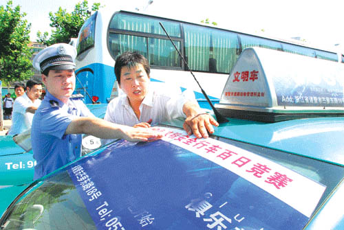 7月7日上午,414辆出租车和790辆营运客车被贴上了文明安全行车百日竞赛标签。当日,市委宣传部、公安局、交通局等部门联合全市客运企业,开展了以“迎奥运,文明安全行车”为主题的客运车辆百日安全竞赛。