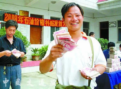 7月9日,河南省唐河县农村客运班车车主刘长伟高兴地领到了油补款。当日,唐河县集中为247辆农村客运班车车主发放石油价格补贴资金共301.8万元。