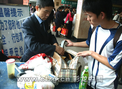 昨天上午10点到11点,有近千名旅客通过第一关——X光扫描安检仪。旅客们感到新奇,“喔,汽车站也要安检了?”“为了安全着想嘛!”在工作人员的安排下,旅客们都很自觉地将随身行李通过安检设备。在过第二关——金属探测门时,乘客们也都十分配合。