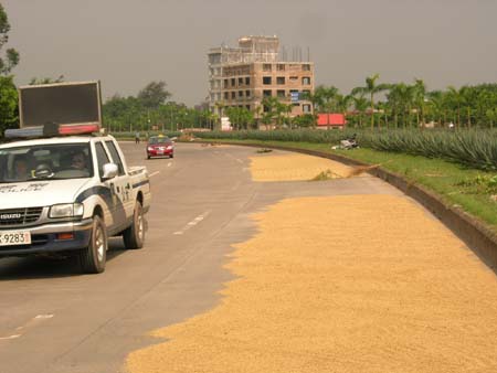 7月18日上午,玉州区名山街道绿扬村一些村民不顾交通安全,非法占用国道324线玉林路段(即玉林城区二环路)绿扬村至太阳村之间路段靠中间绿化带的机动车道晒稻谷。过往机动车不得不减速绕行,给交通安全埋下了隐患。为了消除隐患,玉林市公安局交警支队直属一大队立即派出民警,前往对村民进行教育,使村民认识到占道晒稻谷的危险性。经过教育后,村民们都将稻谷移至别处。