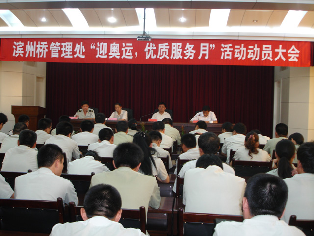 为迎接奥运会的到来,进一步提高服务素质和水平,更好地展现山东高速作为窗口行业的良好社会形象,山东高速股份滨州桥管理处收费站近期开展了以“展高速风采 树文明形象”为主题的“迎奥运 优质服务月”活动。为确保活动的顺利开展,管理处成立了专项活动领导小组,并召开专项活动动员大会,动员广大一线员工以饱满的热情、优质的服务,为广大驾乘人员创造优美的通行环境,提供优质的服务。