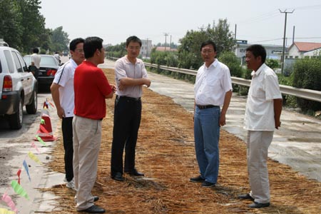 8月8日上午,连云港市公路处滕秀元副主任等一行三人,冒着高温来到赣榆,督查204国道赣榆破碎板大修施工现场,勉励大家切实抓好施工路段安全管理,抓好施工质量安全,规范设置施工路段安全标志、施工标志和相关安全防护设施。