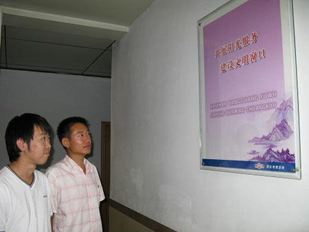 为营造一种健康向上、催人奋进的公路文化氛围,提升文化内涵,激发工作热情,积极推进“规范化、标准化、集约化、人本化”四化活动,近日,德城公路局在办公楼走廊的墙壁上及大厅,悬挂了多块做工精细的玻璃镜匾,有“开展阳光服务,建设文明窗口”、“讲四化,创文明,促发展”、“人人是发展环境,人人是德城形象”等职工在工作中总结出的服务理念。由于镜匾都装饰在走廊的显眼位置,吸引着过往职工和前来办事的群众住足观看,被职工们亲切地称为“四化走廊”。