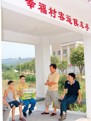 记者在幸福村看到,候车亭建在村委会办公大楼门前的公路边,是该村相对中心的地点,面积约15平方米,水泥立柱结构,顶部为水泥天花板,三面筑有石凳。“候车亭为乘客营造了舒适方便的候车环境,也让附近一些村民晚上乘凉有了一个好去处。”该村一名村干部说。