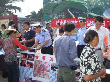 2008年9月19日,镇康县“全国科普日”宣传活动在县“四班子”大楼前拉开序幕。镇康县公安局交警大队利用此次活动,积极开展交通安全知识和交通法律法规宣传。