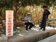 四是设立交通安全检查服务站,严密监控客运车辆。从9月25日起,交警大队在客运车流量最大的辖区省道羊勐线中段设置了固定的交通安全检查服务站,重点监控7人座以上客运车辆的运行动态,实行“逢车必查”,并为司乘人员提供相应服务。