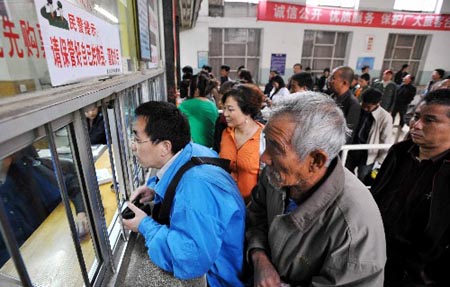 9月27日,旅客在银川汽车站售票大厅排队购票。 随着“十一”黄金周的临近,部分提前放假的学生及返乡的农民工等形成的客流使得宁夏银川黄金周公路客运提前升温。