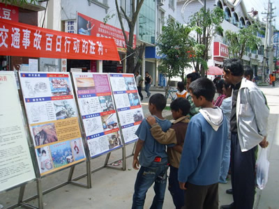 启动仪式后,大队分别在交通安全执勤点、客运企业、县城主干道悬挂内容为“大战一百天,坚决夺取预防特大道路交通事故百日行动的胜利”等的横幅标语。在城区农贸市场、客运站等人员密集地设立交通安全咨询台,摆放交通安全展板,悬挂安全挂图,向过往车辆和群众发放“百日行动”宣传单和“十一”黄金周出行温馨提示,提醒驾驶人注意行车安全。