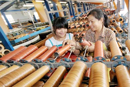 2008年10月4日,江苏省赣榆县城头镇大信塑业工人在生产出口韩国订单制品。“十一”黄金周期间江苏省赣榆县各工业企业根据市场需求,加班加点组织生产,企业工人放弃休息用劳动为节日增光添彩。