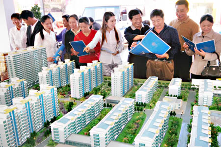 10月1日,赣榆县市民在参观一楼盘模型。在2008赣榆金秋房展交易会上,近20余家参展的房地产开发企业以各种优惠促销活动吸引市民前来看房。