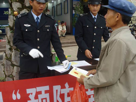 在启动仪式上,双江县公安局交警大队民警向交通参与者和广大群众集中宣传统一整治行动的各项措施和交通安全常识,进一步提高群众的交通安全意识,为整治工作营造了浓厚的舆论氛围。一是向交通参与者和群众广泛宣传集中整治行动工作的各项措施,争取群众对整治工作的支持。二是积极开展交通安全宣传活动,按照奥运攻坚战的总体部署,积极开展交通安全宣传活动,进一步提高群众的交通安全意识。
