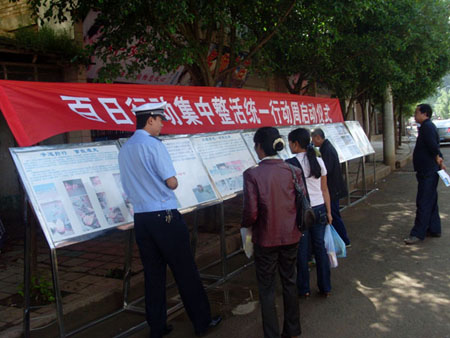 为切实开展好百日行动集中整治统一行动周整治工作,把预防特大道路交通事故百日行动集中整治工作推向新的高潮,镇康县公安局交警大队多措并举,突出重点,强化落实,以确保统一行动取得明显成效,为下步预防特大道路交通事故百日行动深入开展奠定坚实基础。
