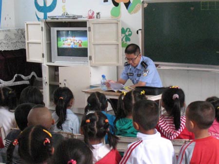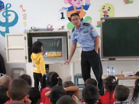 为进一步巩固奥运期间交通管理工作的成果,全面落实预防特大道路交通事故百日行动工作措施,结合《中小学、幼儿园校车交通安全集中整治工作行动》的工作要求,双江县公安局交警大队于10月13日到双江县城东幼儿园为150余名大班的幼儿讲解交通安全法规,向孩子和老师宣传交通安全的重要性,进一步增强老师和孩子的交通安全意识。