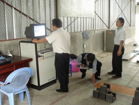 为贯彻落实《中华人民共和国计量法》、《中华人民共和国道路交通安全法》及云南省质量技术监督局、交警总队《关于开展2008年度全省机动车安全检测设备检定工作的通知》(云质监局发〔2008〕38号)的有关要求,严格对我县机动车安全技术检验机构的技术管理和计量监督管理,确保检测数据的准确和公正,保障上路行驶的机动车的运行安全,10月16日由云南省质量技术监督局、云南省公安厅交通警察总队组成的专家组一行4人到双江县佤山摩托车安全技术检测站对检测设备进行周期检定。