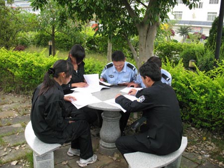 建立健全学习制度——坚持周一、周四集体政治业务学习,用先进的、科学的理论武装民警头脑;坚持周一至周五以队列、指挥手势、体能为内容的早操练兵制度。