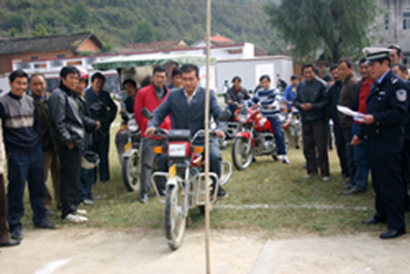 为了推进事故预防“百日行动”,方便山区群众考试办理摩托车驾驶证,做好预防摩托车交通事故源头管理,南漳交警大队将摩托车考试的考场搬到了山区,让居住在山里的摩托车驾驶员在自已的家门口就可以完成驾驶证的科目考试,此举受到山区驾驶员的热烈欢迎和一致好评。